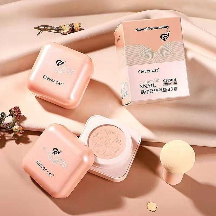کوشن بی بی BB کرم حلزون کلور کت Clever Cat حاوی عصاره فیلتر شده ترشح هلزون با خاصیت جوانسازی و ضدچین و چروک خود با پوشاندن لک، تیرگی، منافذ و خطوط ریز روی پوست بافتی صاف و یکدست به پوست داده و ظاهری طبیعی بدون ایجاد حس سنگینی روی پوست به شما میدهد.