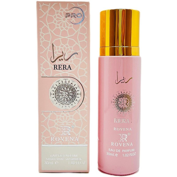 ادکلن 30 میل زنانه روونا مدل ریرا رایحه یارا صورتی rovena rera 30 ml از رایحه ای شیرین و گرم برخوردار است. عطر ادکلن rovena rera 30 ml عطری عربی با رایحه ای شیرین وانیلی و پودری هست. ظاهر خاص و منحصر به فرد ادکلن rovena rera این ادکلن عربی را با بقیه عطر های عربی متمایز کرده است.