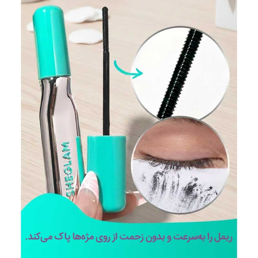 اپلیکاتور حرفه ای پاک کننده ریمل شیگلم مقدار مناسبی از محصول را روی مژه ها پخش می کند و پاکسازی کامل و یکنواخت را برای هر تار مژه فراهم می کند در نتیجه این ریمور Sheglam هر نوع ریمل حتی سرسخت ترین ریمل ها از روی مژه به خوبی پاک می نماید.
